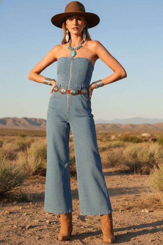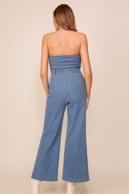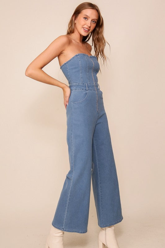 DENIM STRAPLESS JUMPSUIT